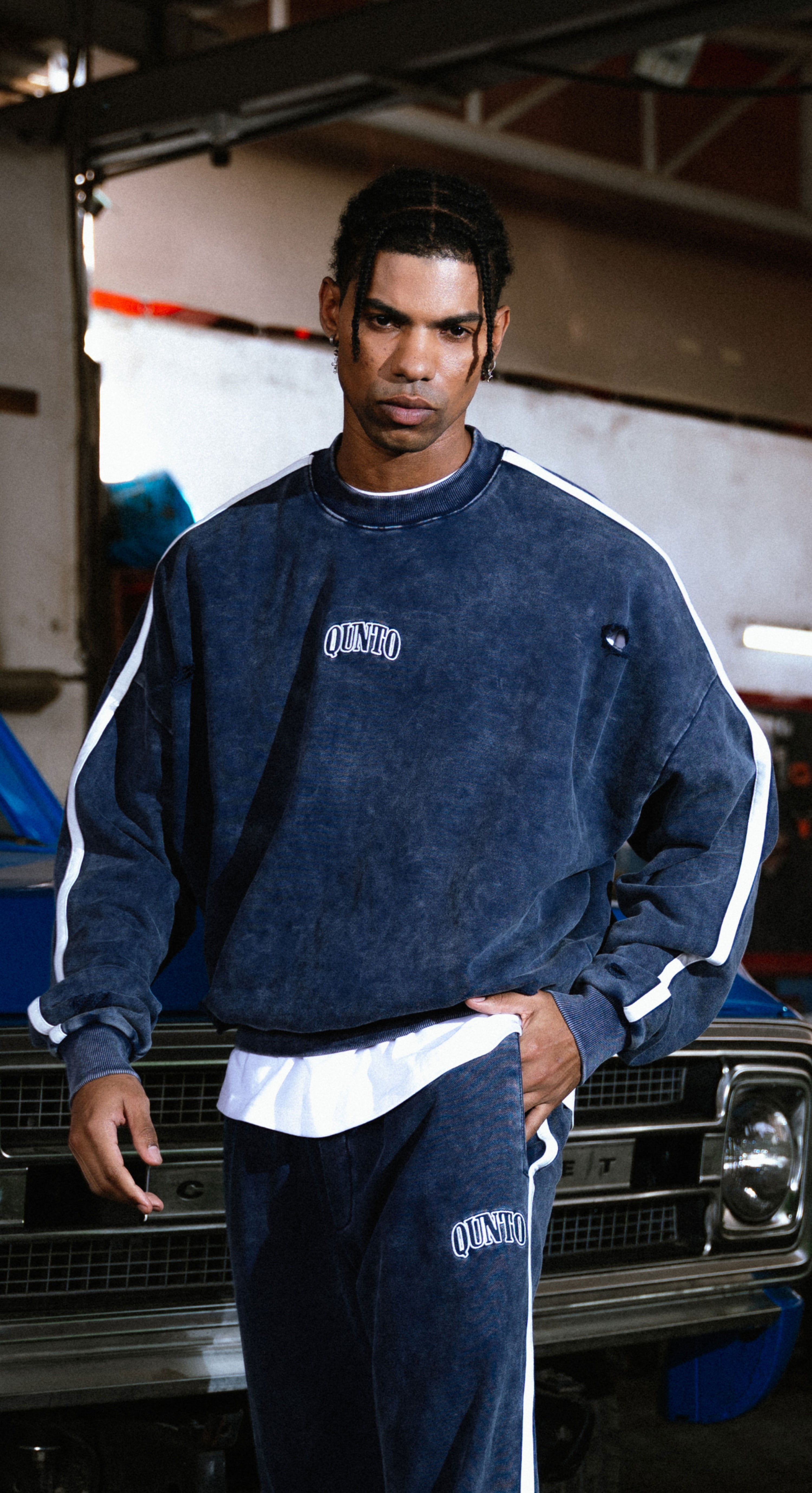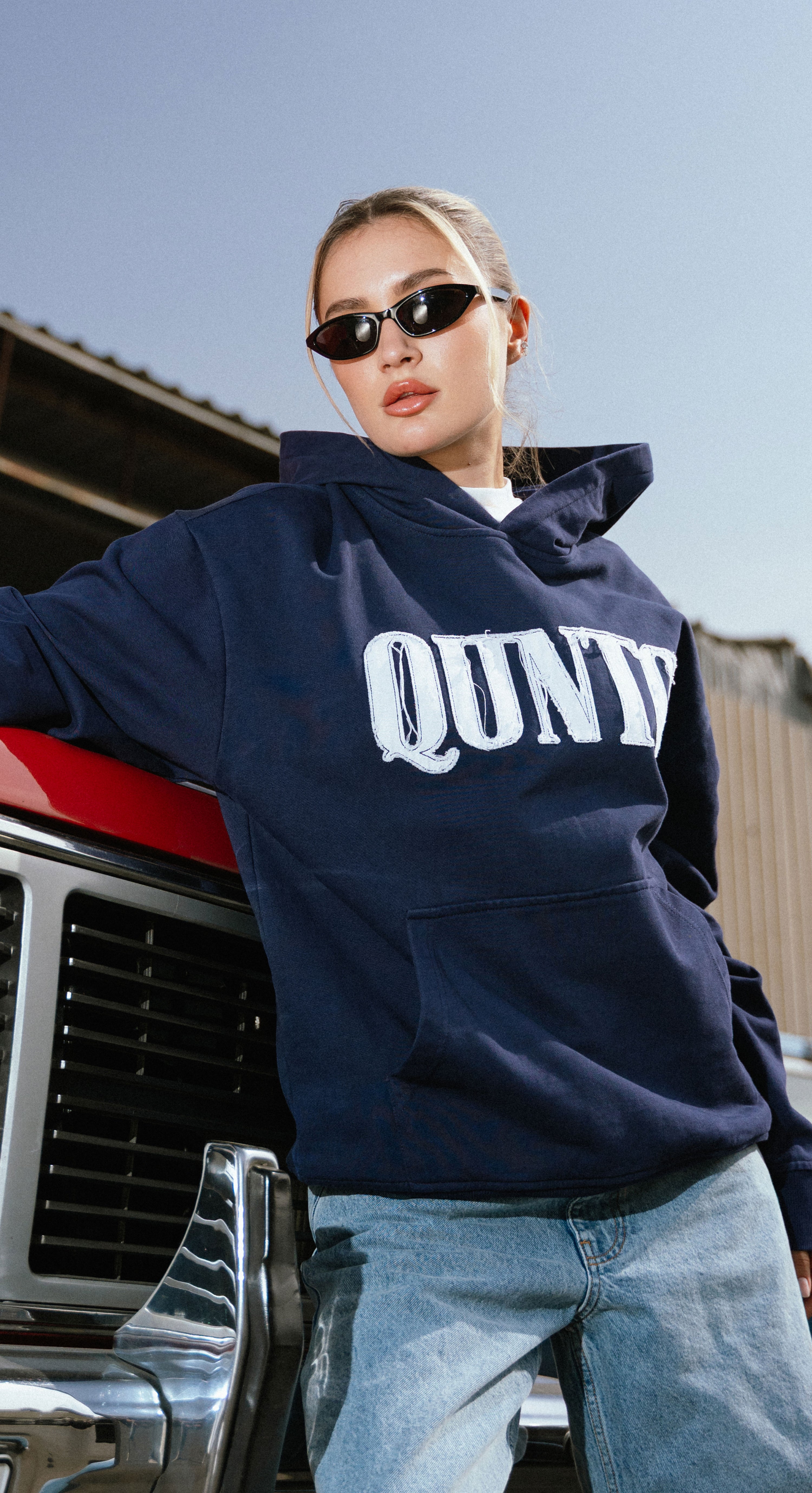 QT DIAMOND ZIPER HOODIE BLUE